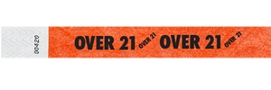 Ideal for crowd management at a variety of events and festivals, this wristband's "OVER 21" message makes it perfect for hospitality staff to identify guests of a legal age to serve alcohol. This item is offered in a variety of colors, so colors can be switched on a daily basis as needed.