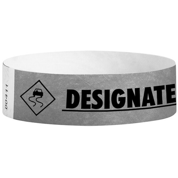 Easily identify designated drivers with this Carnival King Tyvek® 3/4" x 10" silver "DESIGNATED DRIVER" disposable wristband!