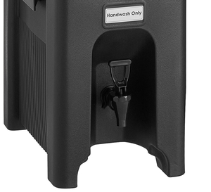 This doesn’t work as intended. As it sits on a table with a straight edge (aka all tables) there’s no room for the water to properly flow down to the bucket below, causing soapy water to spray everywhere. The issue is that the spout is flushed against the edge of the tank, as opposed to protruding out. Health department almost shut us down because of improper water flow.