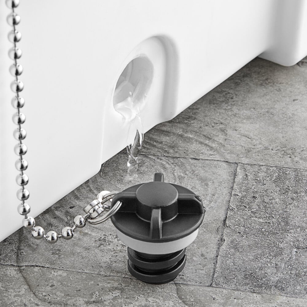 After use, the cooler is easy to wash thanks to a built-in drain plug, and because it's attached with a chain, it won't be misplaced on the job.