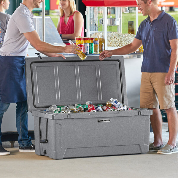 Wherever the party and whatever the menu, this gray 170 qt. rotomolded cooler / ice chest provides the holding power, durability, and convenience that you need and want. Keep guests well fed and properly hydrated at casual parties, festivals, and fairs with the help of CaterGator!