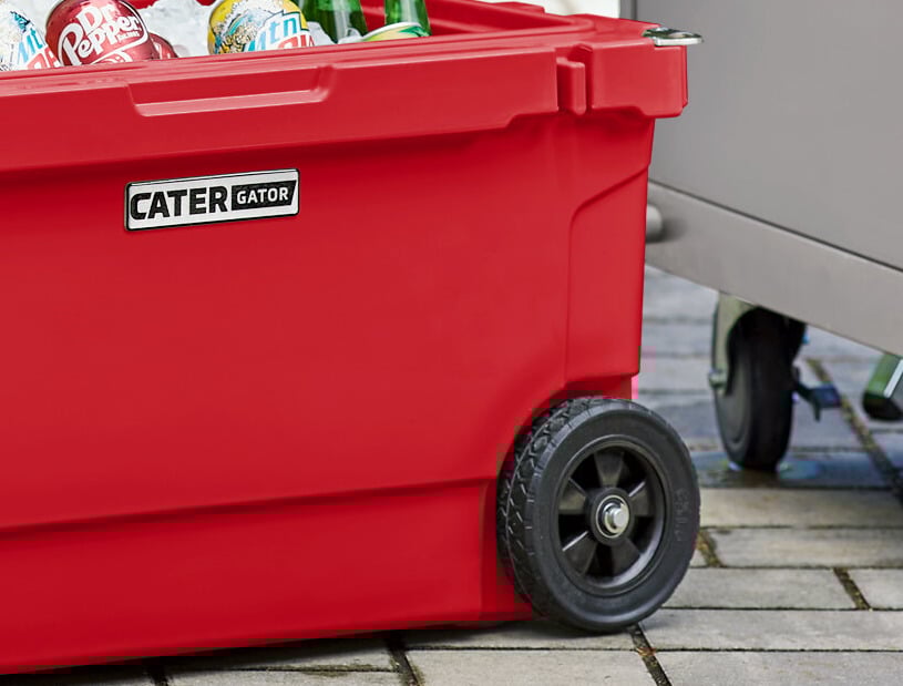 Rotomolding is a process used to create a solid, seamless plastic lid and body. This method ensures greater impact resistance and long-term durability compared to traditional hollow-core plastic coolers with seams. As a result, CaterGator coolers will not warp, crack, sweat, or leak, and they will keep contents cold for extended periods.