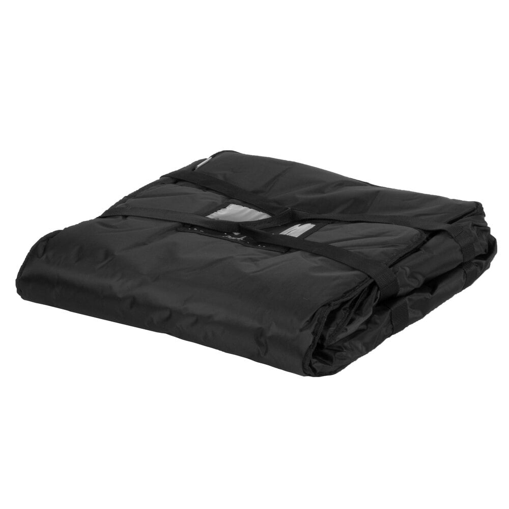 This pizza bag offers the exceptional heat retention your establishment needs for its delivery service. It maintains food temperatures longer than other leading brands without breaking the bank. This bag uses 2" thick poly-batting insulation to accomplish this, keeping your pizzas 10% warmer than the competition during the first hour of use for a fraction of the cost. A gusseted closure helps retain the content's heat even longer by eliminating unwanted openings where heat can escape. It holds up to (6) 16", (5) 18", or (4) 20" pizza boxes, or up to (3) 18" deli trays.