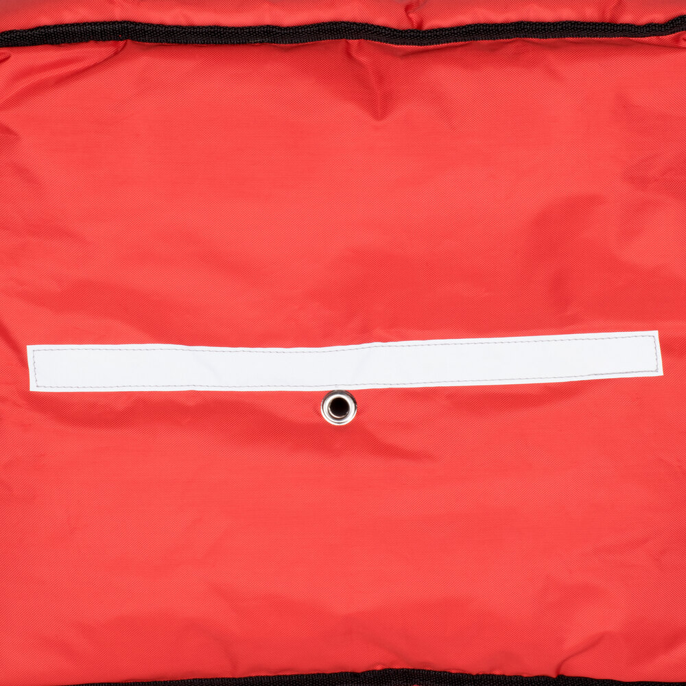 This pizza bag offers the exceptional heat retention your establishment needs for its delivery service. It maintains food temperatures longer than other leading brands without breaking the bank. This bag uses 2" thick poly-batting insulation to accomplish this, keeping your pizzas 10% warmer than the competition during the first hour of use for a fraction of the cost. A gusseted closure helps retain the content's heat even longer by eliminating unwanted openings where heat can escape.