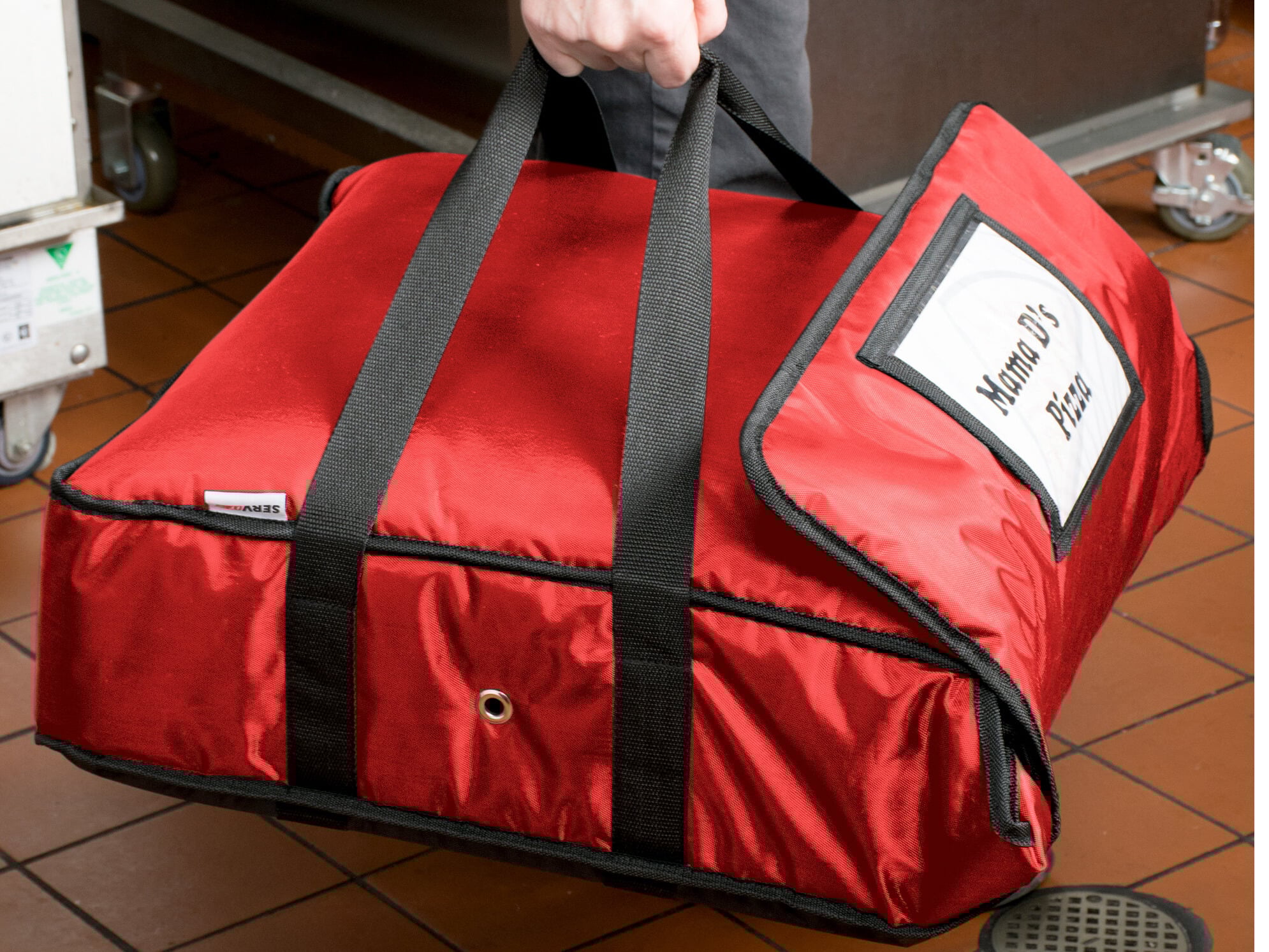 Heavy-duty, reinforced straps promote safe, comfortable lifting and will last through repeated use. A hardboard bottom and a wrist strap on the underside of the bag ensure stability while transporting any number of pizzas.