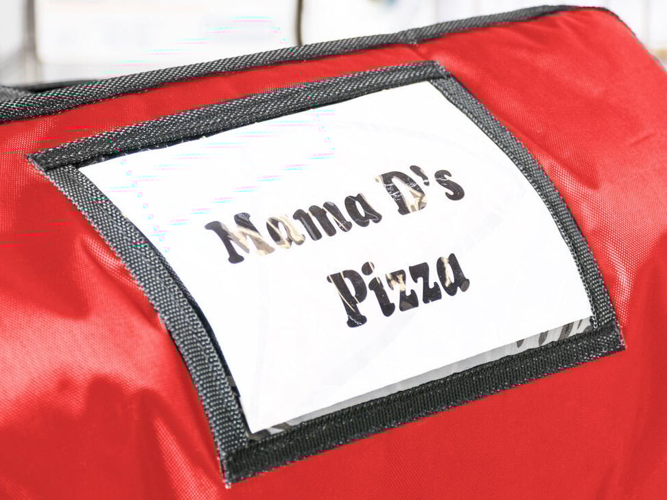 This pizza delivery bag features grommets to allow moisture to escape, preventing your boxes and pizzas from getting soggy and ensuring they stay crisp and fresh. Hook and loop fasteners allow for opening and closing of the bag. These hook and loop fasteners remain secure during transportation, preventing pizzas from shifting from pizzeria to destination.