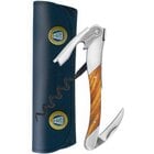 The perfect choice for a sommelier, this one-of-a-kind corkscrew delivers excellent performance and a classy appearance to elevate wine service in a wine bar or fine dining restaurant. This corkscrew's smooth, rounded boot lever opens bottles with ease. To use, start by cutting the foil under the lip of the bottle using the forged knife blade. Remove the foil and retract the knife. Then insert the worm into the cork and turn to secure the corkscrew. Place the notch of the boot lever on the lip of the bottle, hold it in place, and lever the handle to pull the cork out of the bottle.