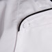 The size 56 3X Chef Revival Gold Unisex Chef-Tex J008 unisex white customizable executive chef jacket with black piping is perfect for any chef who needs to look professional and presentable, but still requires flexibility and comfort when working in the kitchen. This stylish chef coat features a cross-collar neckline, dropped shoulder design, 12 cloth covered buttons, and a convenient thermometer and pen pocket.