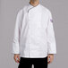The size 5X Chef Revival Gold Unisex Chef-Tex J008 unisex white customizable executive chef jacket with black piping is perfect for any chef who needs to look professional and presentable, but still requires flexibility and comfort when working in the kitchen. This stylish chef coat features a cross-collar neckline, dropped shoulder design, 12 cloth covered buttons, and a convenient thermometer and pen pocket.