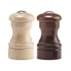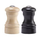 Provide your guests with easy access to salt and pepper with this Chef Specialties 04556 Professional series 4" Capstan ebony pepper shaker and natural salt shaker set! Featuring an attractive ebony pepper shaker and a natural finish salt shaker, your guests can easily tell the difference between each seasoning. This salt and pepper shaker set is built to resist corrosion, ensuring longevity in commercial settings. Plus, this set's 4" height is perfect for restaurants, cafes, pubs, or bars.