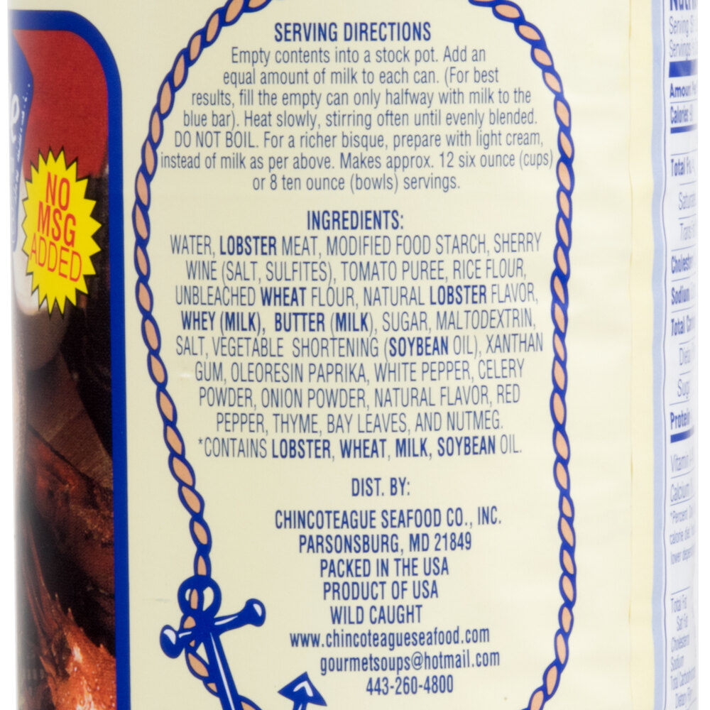 Chincoteague Condensed Lobster Bisque - 51 oz. Can it serves a small family and has a nice flavor even served over pasta or rice when made thick