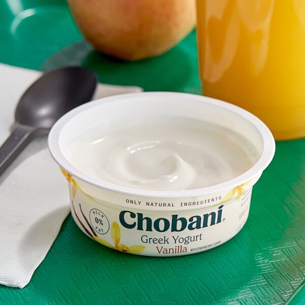 Balance deliciousness and nutritiousness with this Chobani non-fat vanilla Greek yogurt. Your customers will adore this thick, velvety Greek yogurt because it has a sweet, tangy, and vanilla-forward flavor profile. It is made with cultured non-fat milk for an appetizing, authentic Greek yogurt taste. Watch your customers smile and enjoy this mouthwatering product. It is a sweet and healthy addition to restaurants, grab-and-go buffets, and cafeterias!