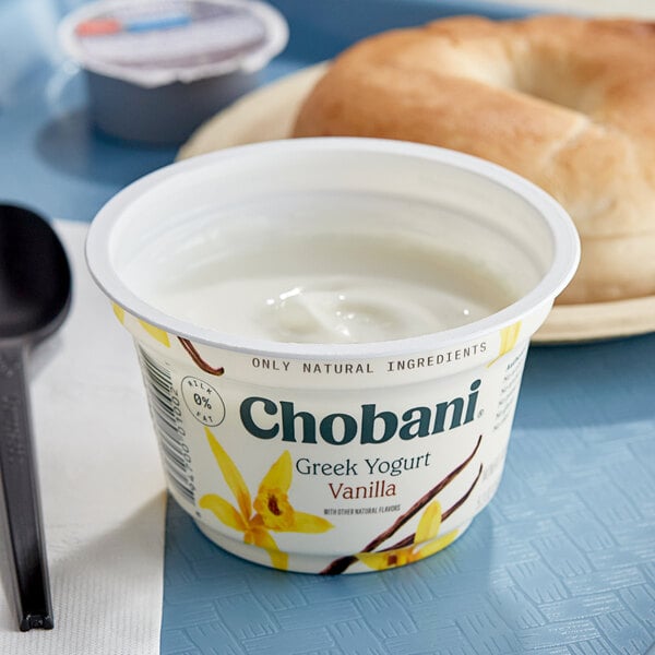 Balance deliciousness and nutritiousness with this Chobani non-fat vanilla Greek yogurt. Your customers will adore this thick, velvety Greek yogurt because it has a sweet, tangy, and vanilla-forward flavor profile. It is made with cultured non-fat milk for an appetizing, authentic Greek yogurt taste. Watch your customers smile and enjoy this mouthwatering product. It is a sweet and healthy addition to restaurants, grab-and-go buffets, and cafeterias!