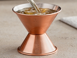Featuring a sleek, modern copper colored exterior, this jigger is made of durable stainless steel that is easy to clean and won't corrode when used with acidic ingredients.