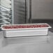Ok.... So NOT every pan can fit into every space THAT A DESCRIPTION SAYS IT WILL (measurements). Assuming that pans/prep tables-cold or hot would be universal in size/build is my fault. Which is why I gave this product a 4 star. My rating has nothing to do with the product itself. I looked at a chart to find out what sized pans would go into certain spaces and ordered based on that. But what I did find out was that every pan is shaped just a little different... So this pan didnt fit by about 1/8 of an inch due to a little bump out ... I tried to force it... Didn't work. But, This item is heavy duty, quality gauge metal. I'm sure that I will find something to do with it...just not in my sandwich prep table.