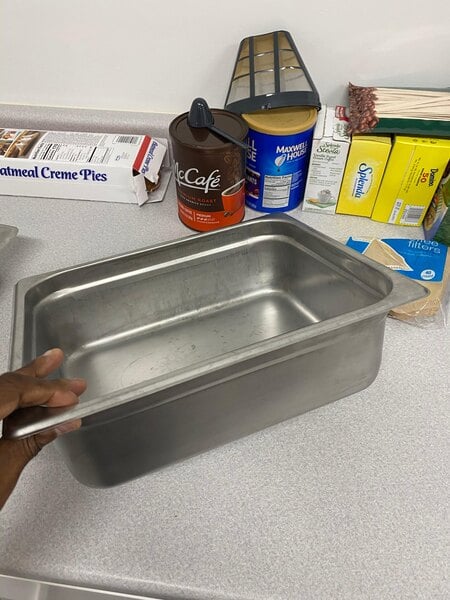 Nice new pans who don't like new pans? Well, it does a great job for holding the steam in a steam table and quick clean-up