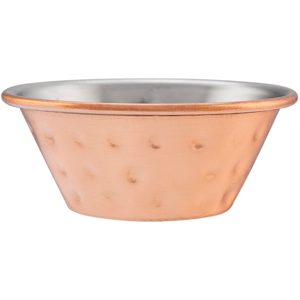 I purchase the choice 1.5 oz hammered cooper-plated stainless steel round sauce cup for ketchup and horseradish sauce. They are fairly nice but do have quite a few blemishes on them.