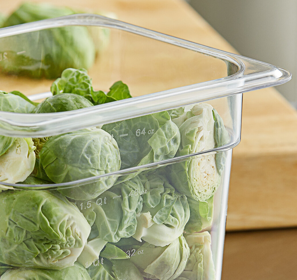 Thanks to the clear material, this food pan offers optimum visibility for quick product identification. Plus, it includes capacity indicators molded in the side in both liter and quart measurements so that you can quickly and easily do inventory management and measure out how much you need of any product.
