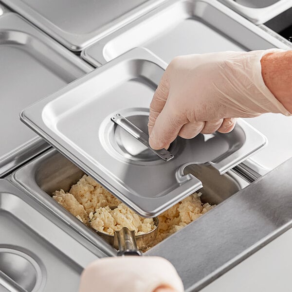 "Durable and reliable, these 1/6th pan lids make it easier for us to offer more choices on our steam table. I use them for different kinds of chili and mac and cheese in deep wells. The openings are large enough for my ladle handles, but not so large that they let all the moisture..."