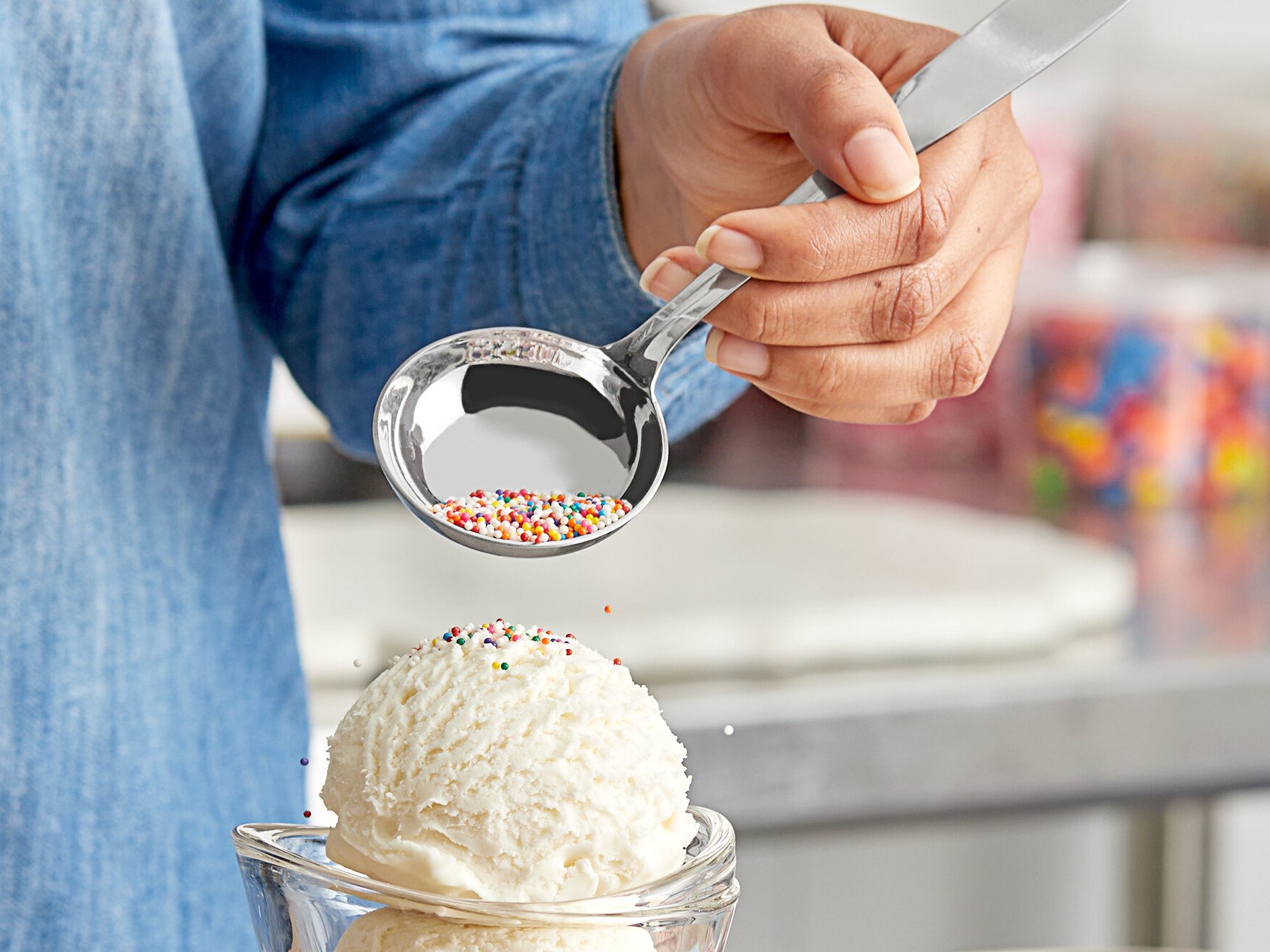 This utensil is ideal for a variety of applications, making it a versatile tool for anything from table service to self-service at buffet stations! Use it to ladle a perfect 1 oz. portion of caramel on a sundae, sauce on a pizza, or cheese on nachos! Offering both style and function, this ladle is a must-have addition to any busy buffet, catering event, or large commercial kitchen.