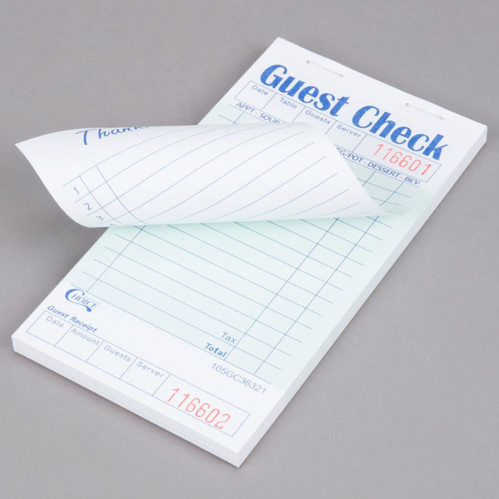 "These checks are exactly what we needed for our little business. It has a perforated guest number on the bottom to give to your customers and the writing area is big. A LOT cheaper too, than the ones you can buy at stores. Thanks!"