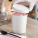 A tight-fitting lid is included with each container to provide secure, reliable transport from one location to the next. Along with the cup's double-wall insulation, the non-vented lid also works to ensure that your food is kept at the appropriate temperature, allowing your customers to enjoy their tasty treats at their convenience.
