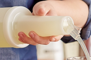 The white 1 qt. container is made of high density plastic for long-lasting use. The neck gives your employees a secure grip as they pour drinks for customers.