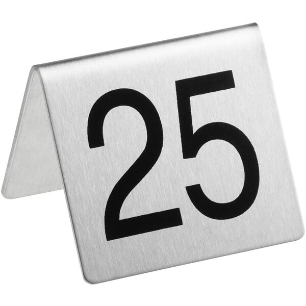 Keep your tables easily identifiable with these Choice 1 to 25 stainless steel table tent signs.