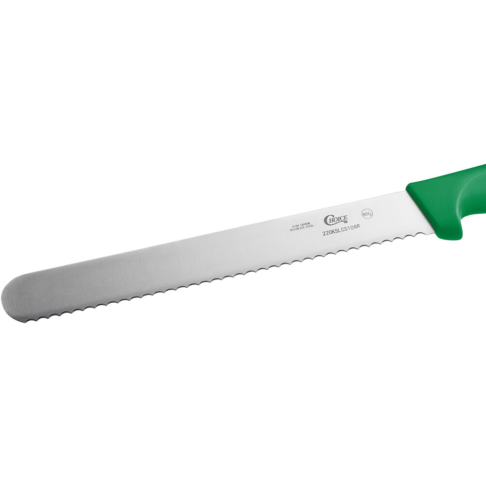 Choice 10" Serrated Edge Slicing / Bread Knife with Green Handle