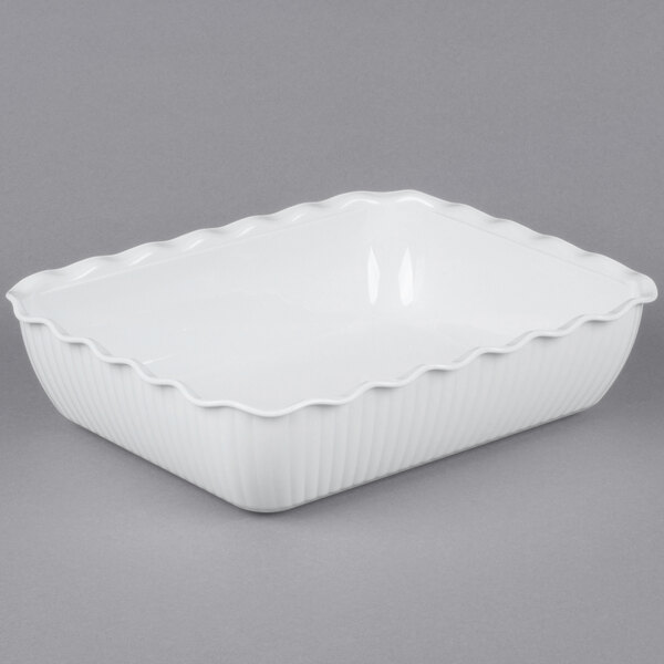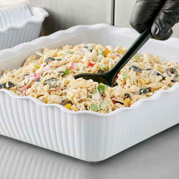 This deli crock has an elegant swirl pattern, wavy rim, and high gloss finish. Made of durable plastic, it is great for frequent use and is resistant to food acids and oils.