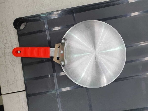 This little guy is perfect for omelettes whether at home or at catering and restaurant omelette stations. The silicone handles is essential if you're using gas.