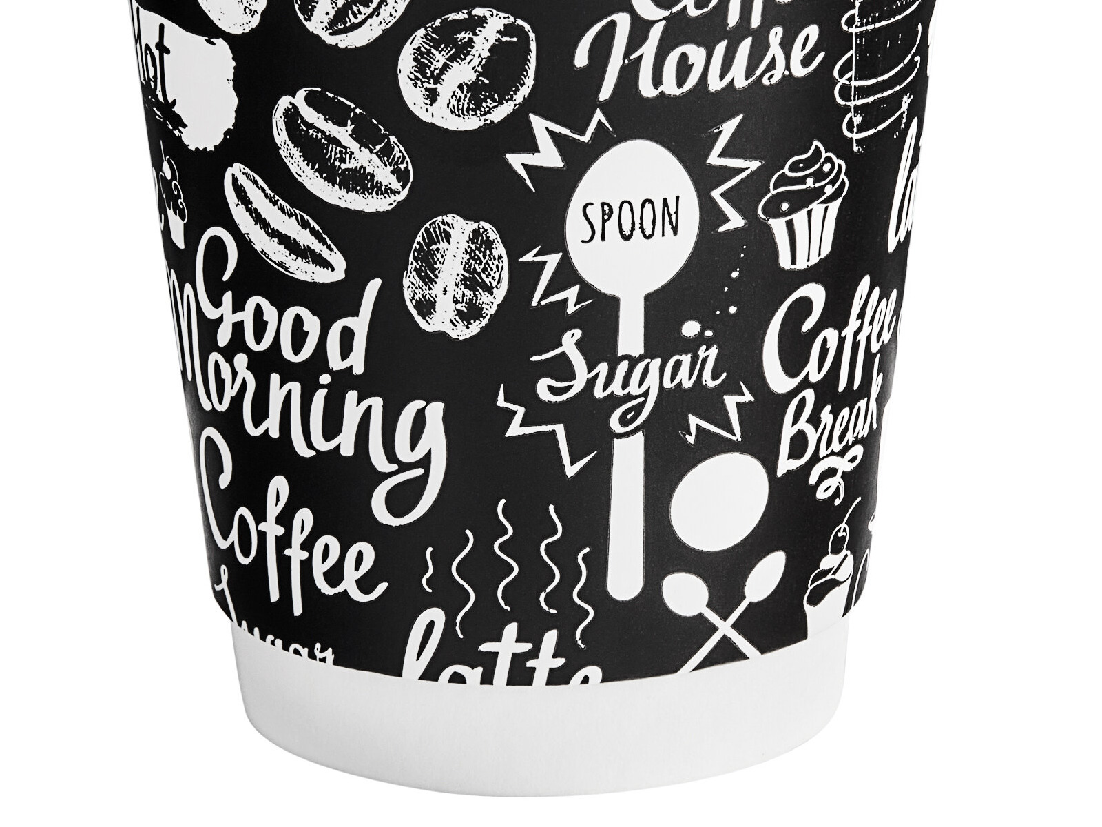 This cup features a contrasting black and white design decorated with coffee lingo, creative graphics, and coffee beans to make your signature brews look their best! As an added bonus, you can stack this cup or use it in a cup dispenser for convenient storage and accessibility.