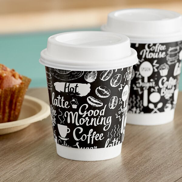 Choice 10 oz. Smooth Double Wall Coffee Break Print Paper Hot Cup and Lid - 100/Case