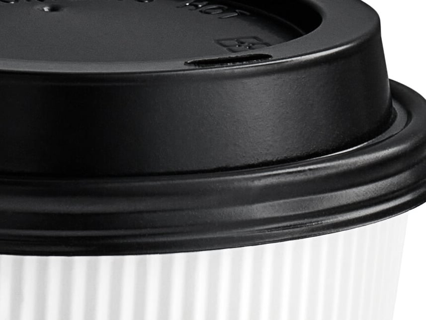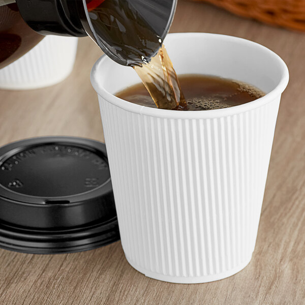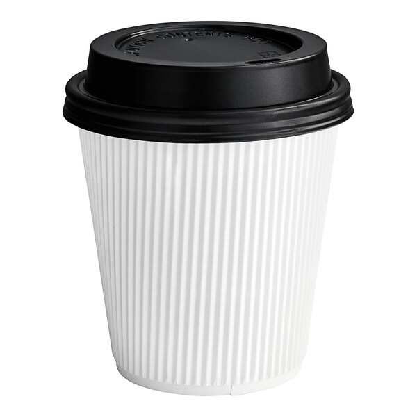 Choice 10 oz. Double Wall Ripple White Paper Hot Cup and Black Lid - 100/Pack