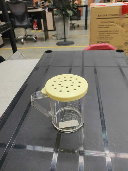 Solid shaker! Holds a good amount, clear so you can see what’s inside, and the yellow lid makes it easy to spot. Perfect for coarser spices and super easy to clean. Great value!