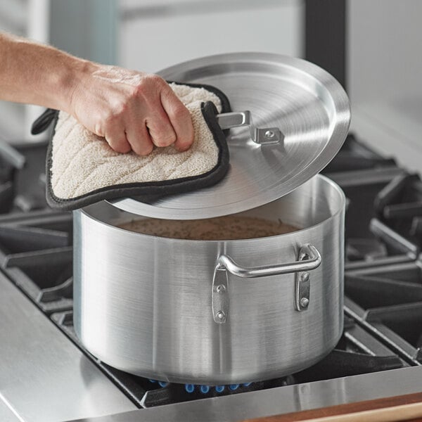 This sauce pot features a versatile aluminum construction that's lightweight and heats up quickly. It offers superior heat distribution and consistency, making it perfect for preparing your housemade soups and sauces, mushroom au jus, gravy, pastas, risotto, oatmeal, custards, and puddings. It's also great for blanching vegetables.