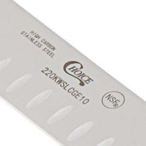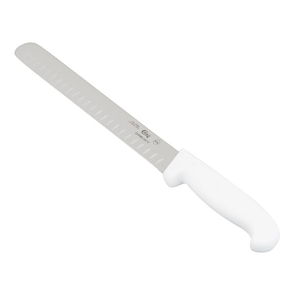 This knife allows for fast, easy cutting and helps prevent thin slices of meat, fruits, or vegetables from sticking to the blade. Long-lasting, light, and affordable, this Choice knife is ideal for use in any high-volume commercial kitchen, as well as culinary schools and cafeterias.