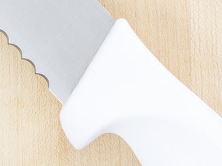 • Perfect for slicing cooked meat, breaking down large fish, and slicing bread