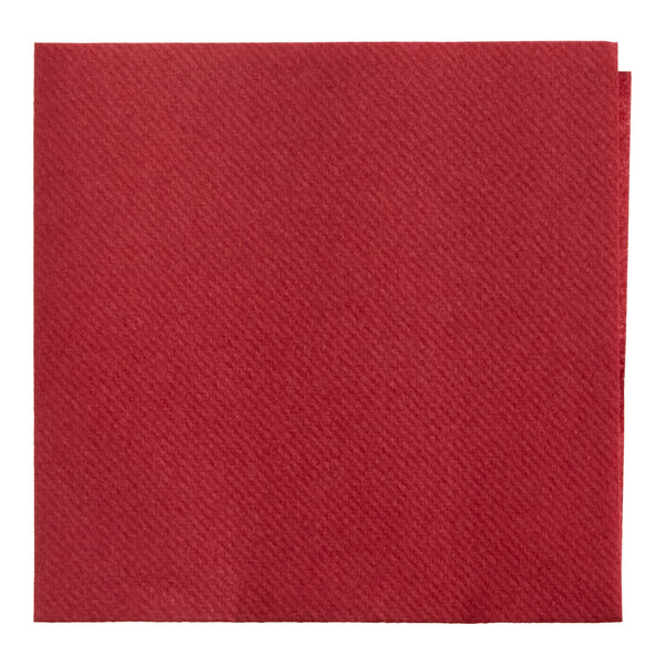 Thanks to this Choice 10" x 10" burgundy airlaid linen-feel 1/4 fold beverage napkin, you can now provide your guests with a high-end disposable napkin at your restaurant, bar, lounge, or catered event! This napkin is made of high-quality, airlaid paper with a softer, fluffier feel than DRC paper. Plus, the upscale look and burgundy color add style and sophistication to any table setting.