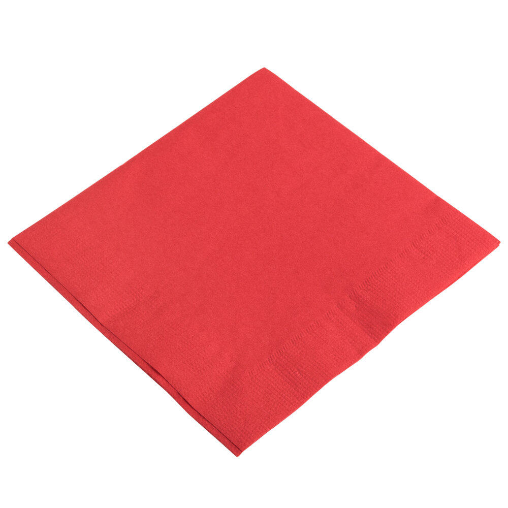 These red 2-ply beverage napkins are used in our store to signify new guests. They really stand out and allow the manager on duty to see that able has someone that has never been there before. The napkins are durable and don't rip easily.