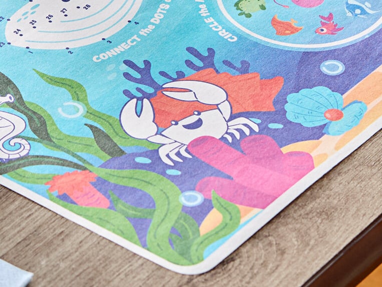 - Fun, interactive Under the Sea themed kids placemats to keep kids entertained