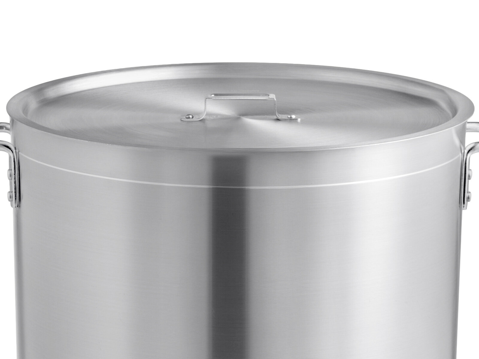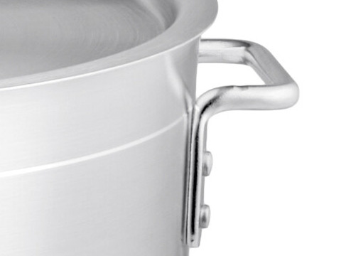 Made with 3003 aluminum, this stock pot and cover offer superior thermal conductivity. Aluminum also heats much quicker than its stainless steel counterparts for quick, efficient use in a busy kitchen. Measuring 4mm thick, its durable construction ensures long-lasting performance through washing, storage, and constant heating.