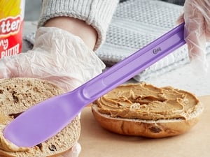This spreader's smooth, dull edges offer a safer way to spread your food than with knives.