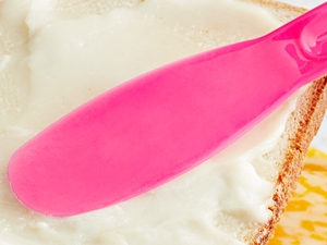 This spreader's smooth, dull edges offer a safer way to spread your food than with knives.