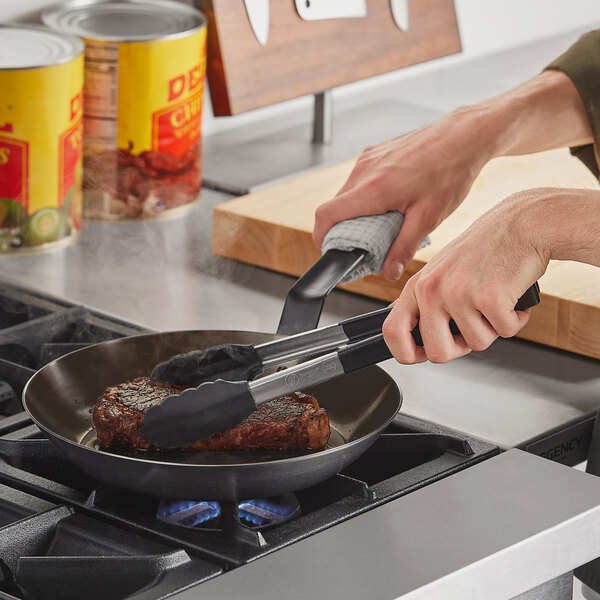 Made with sloped sides that are ideal for searing, sauteing, and frying on the stove or over an open fire, this pan only gets better with time. Simply season the pan before using it for the first time and it will gradually become more seasoned and develop non-stick properties after each and every use. This versatile fry pan is a must-have addition to any commercial kitchen!