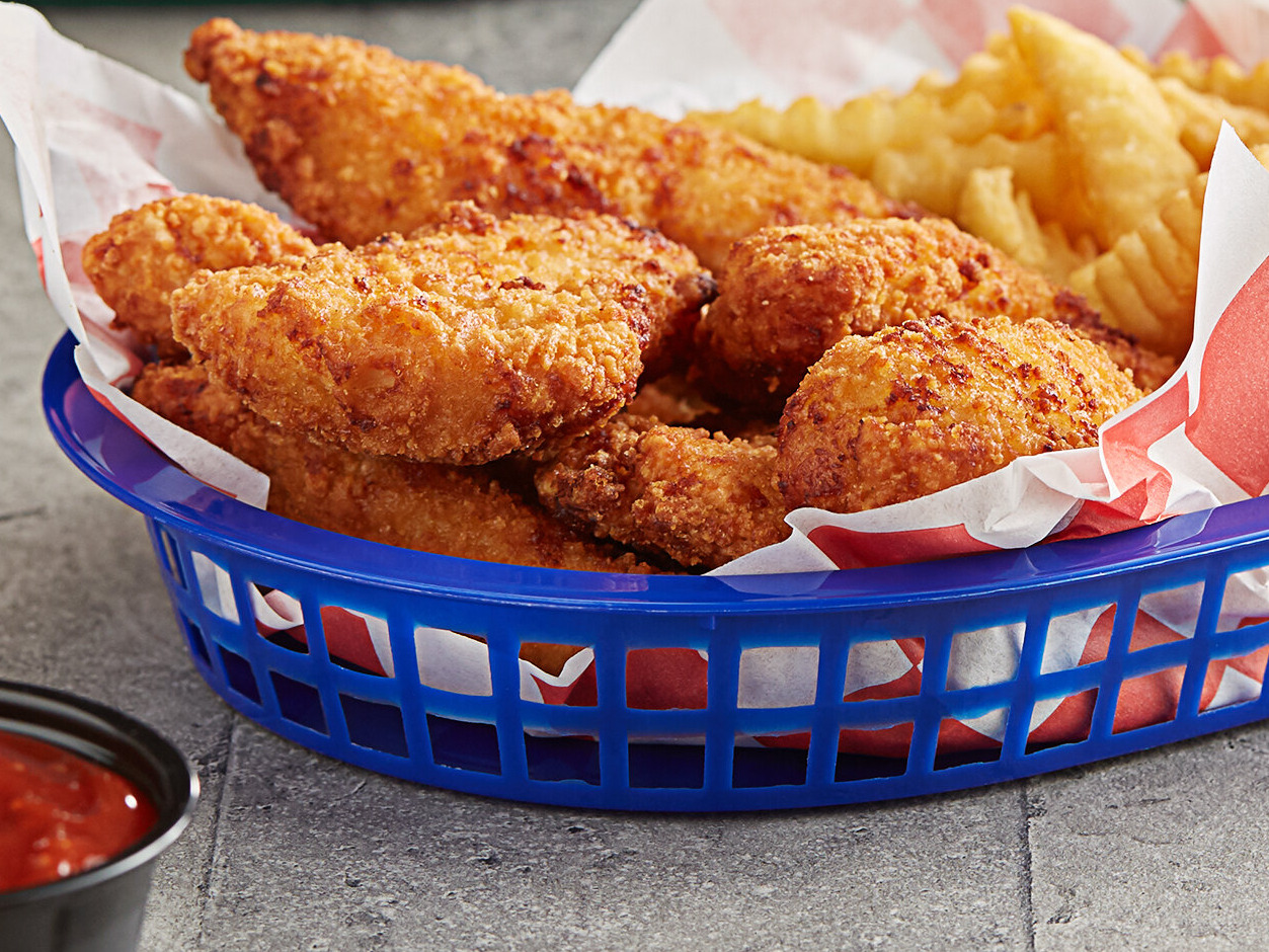 Great basket in such a cute color! we use them for chicken tenders, subs, and fries, can fit a whole order of 6 tenders and half a pound of fries. great to use and easy clean!