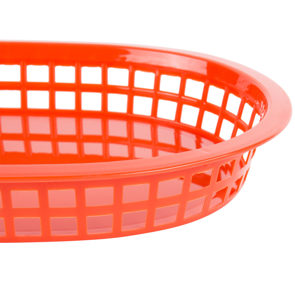 These plastic baskets are the perfect size for a burger and fries. They are super easy to clean and easily withstand the heat from hot foods.