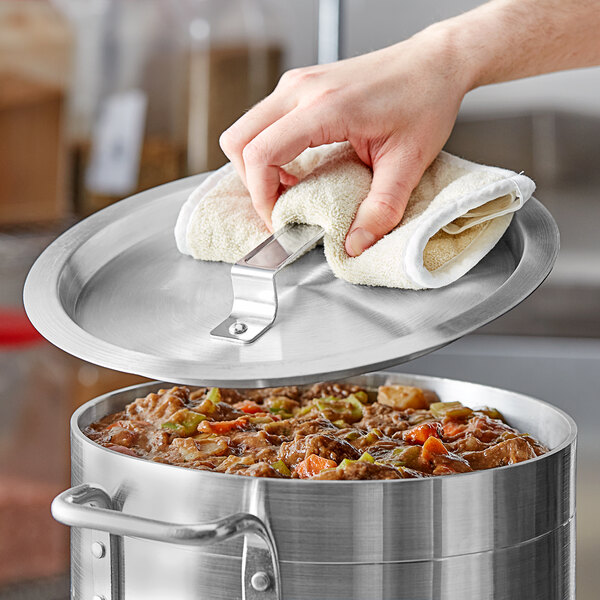 Keep up with food production in your commercial kitchen or at your catered event with this handy and dependable Choice aluminum cover. It’s ideal for sealing in heat and offers durability for long-lasting use without breaking your budget. Use this cover to control evaporation when making soups, stews, and sauces.