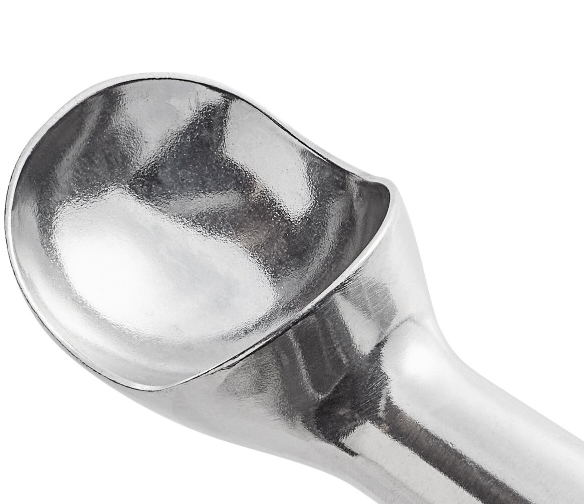 Designed for scooping hard ice cream, this scoop features a durable 1-piece cast aluminum construction and the handle contains non-toxic defrosting fluid that enables easier and faster dipping. Plus, the defrosting handle helps prevent ice crystals from forming on the scoop in between uses.