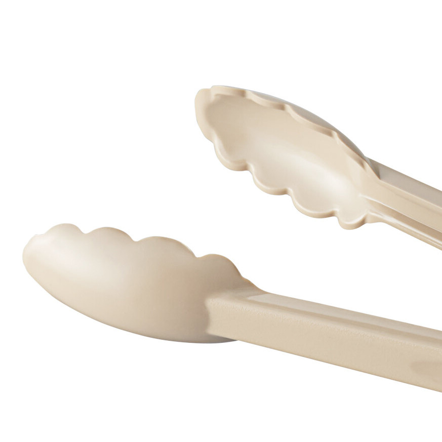 With a one-piece design, these tongs allow for easy cleaning and maintenance, ensuring a quick turnaround for your busy foodservice operation. Its classic beige color looks professional while allowing for a color-coded system within your establishment.